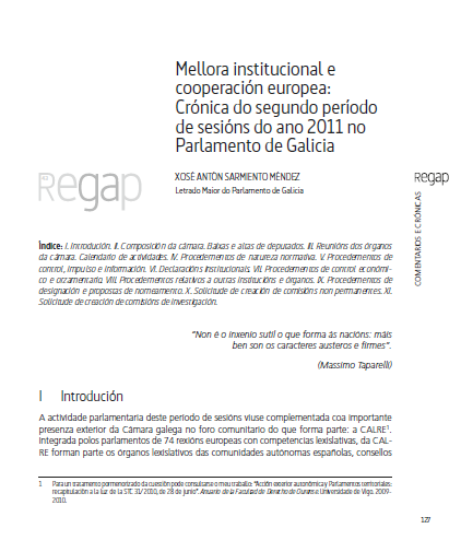 Mejora institucional y cooperación europea: Crónica del segundo período de sesiones del año 2011 en el Parlamento de Galicia