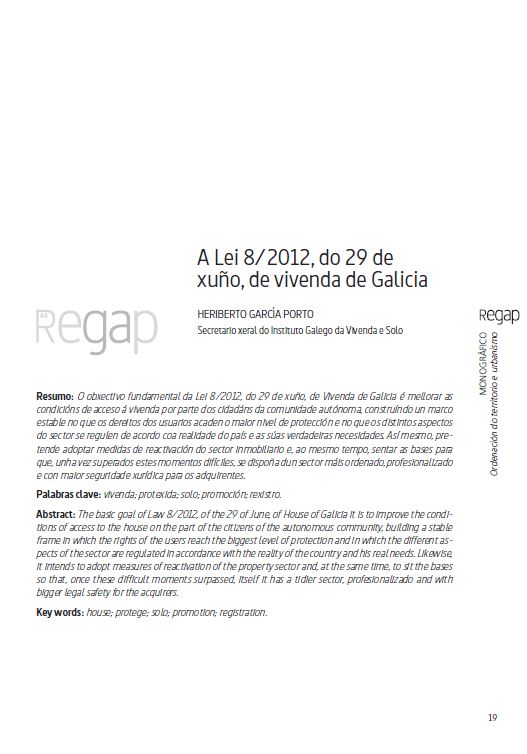 A Lei 8/2012, do 29 de xuño, de vivenda de Galicia