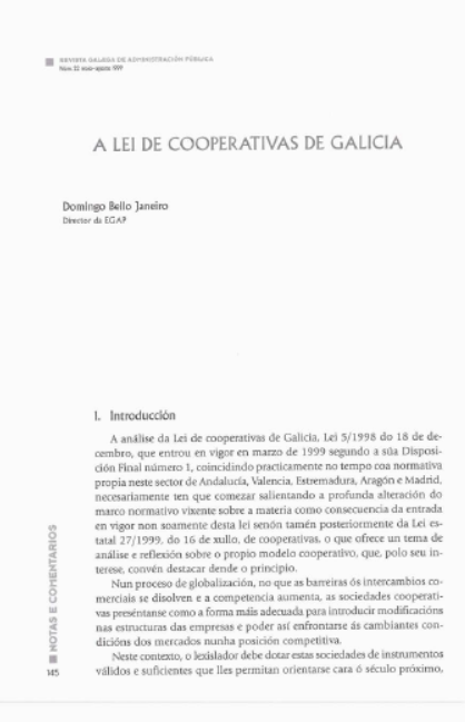 - Domingo Bello Janeiro, Dereito agrario autonómico galego , Revista Galega de Administración Pública: Vol. 1 Núm. 32 (2002)