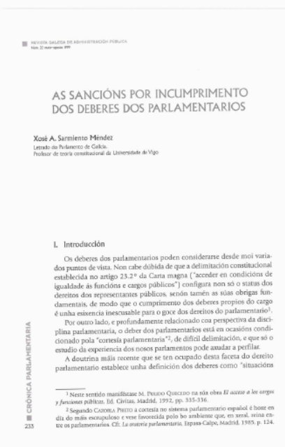 - Xosé A. Sarmiento Méndez, Os grupos parlamentarios no dereito parlamentario galego , Revista Galega de Administración Pública: Vol. 1 Núm. 14 (1996)