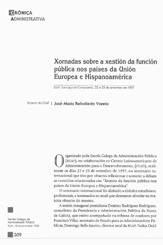 - José Mª Rebolledo Varela, O novo servizo político , Revista Galega de Administración Pública: Vol. 1 Núm. 18 (1998)