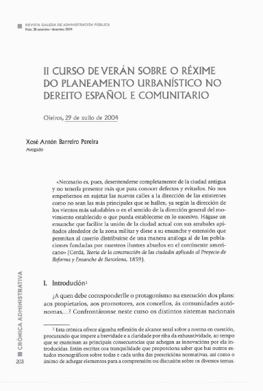 - Xosé Antón Barreiro Pereira, Crónica das xornadas sobre o dereito agrario , Revista Galega de Administración Pública: Vol. 1 Núm. 39 (2005)