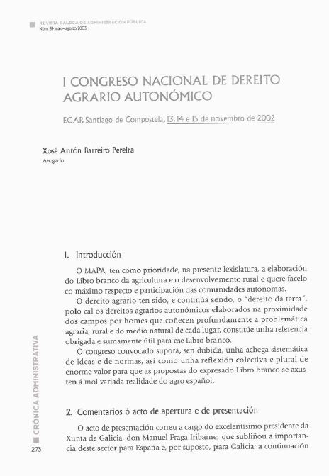 I Congreso Nacional de Dereito Agrario autonómico