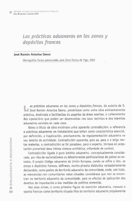 Baixo o título da obra encérrase unha aparente contradicción: a referencia a prácticas aduaneiras en instalacións que teñen como característica esencial, por definición, a inaplicación, precisamente, da regulamentación aduaneira no seu ámbito de actividade. Contradicción aparente, pois se, para o leigo nestas materias, a contradicción se fai paradoxo, para o experto, tórnase en aceptación proverbial desa íntima síntese-antitética, orfandade de control.