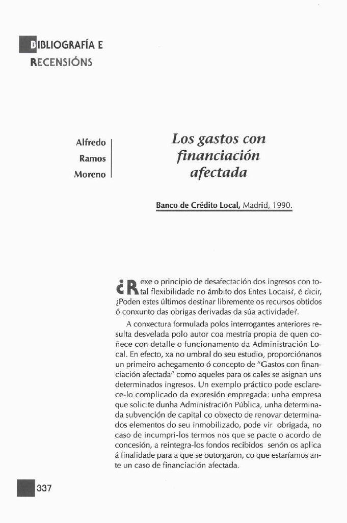 ¿Rexe o principio de desafectación dos ingresos con total flexibilidade no ámbito dos Entes Locais?, é dicir, ¿Poden estes últimos destinar libremente os recursos obtidos ó conxunto das obrigas derivadas da súa actividade?. A conxectura formulada polos interrogantes anteriores resulta desvelada polo autor coa mestría propia de quen coñece con detalle o funcionamento da Administración Local. En efecto, xa no umbral do seu estudio, proporciónanos un primeiro achegamento ó concepto de "Gastos con financiación afectada" como aqueles para os cales se asignan uns determinados ingresos.