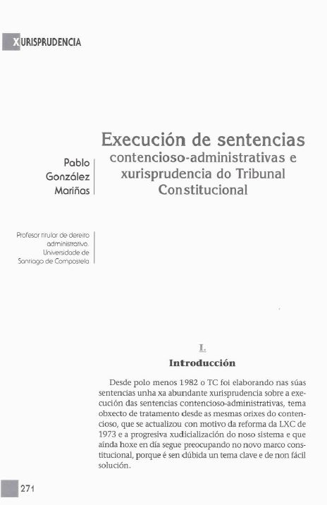 - Pablo González Mariñas, Comentarios sobre a Lei de Xurisdición Contenciosa Administrativa (Lei 29/1998, do 13 de xullo) , Revista Galega de Administración Pública: Vol. 1 Núm. 36 (2004)
