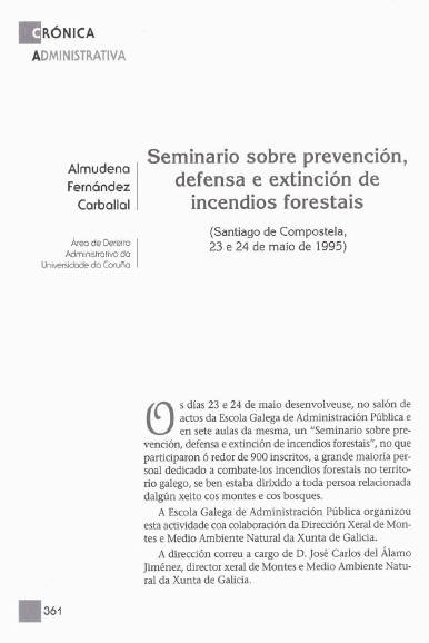 - Almudena Fernández Carballal, Tutela do medio ambiente, especialmente en materia de costas , Revista Galega de Administración Pública: Vol. 1 Núm. 12 (1996)