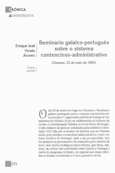 - Enrique José Varela Álvarez, Seminario galaico-portugués sobre o sistema contencioso-administrativo , Revista Galega de Administración Pública: Vol. 1 Núm. 10 (1995)