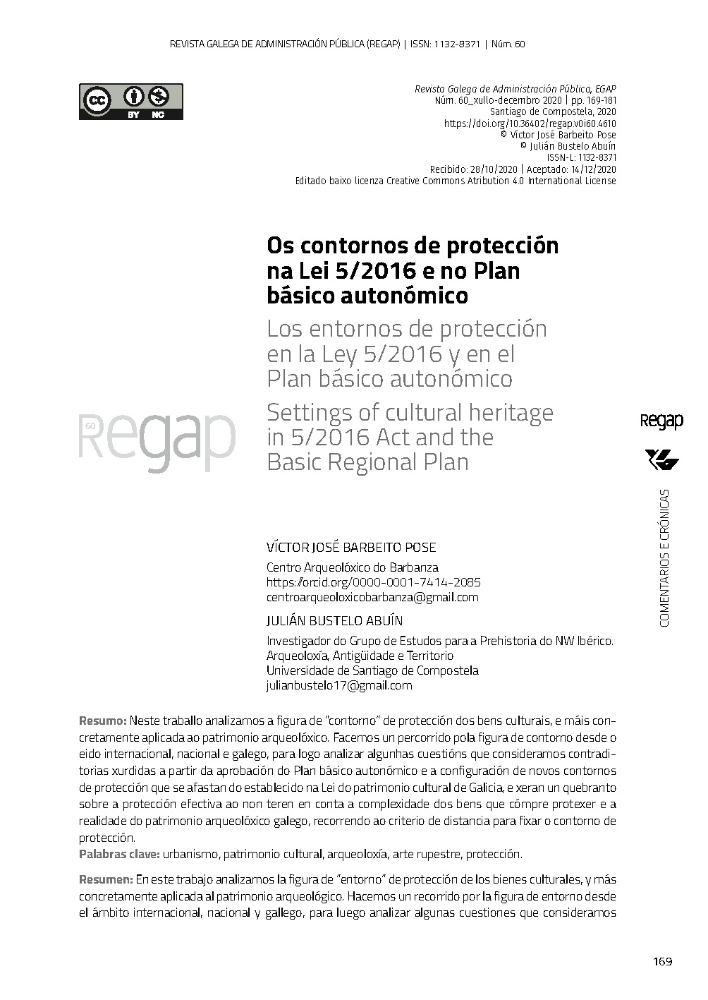 Neste traballo analizamos a figura de “contorno” de protección dos bens culturais, e máis concretamente aplicada ao patrimonio arqueolóxico. Facemos un percorrido pola figura de contorno desde o eido internacional, nacional e galego, para logo analizar algunhas cuestións que consideramos contraditorias xurdidas a partir da aprobación do Plan básico autonómico e a configuración de novos contornos de protección que se afastan do establecido na Lei do patrimonio cultural de Galicia, e xeran un quebranto sobre a protección efectiva ao non teren en conta a complexidade dos bens que cómpre protexer e a realidade do patrimonio arqueolóxico galego, recorrendo ao criterio de distancia para fixar o contorno de protección.