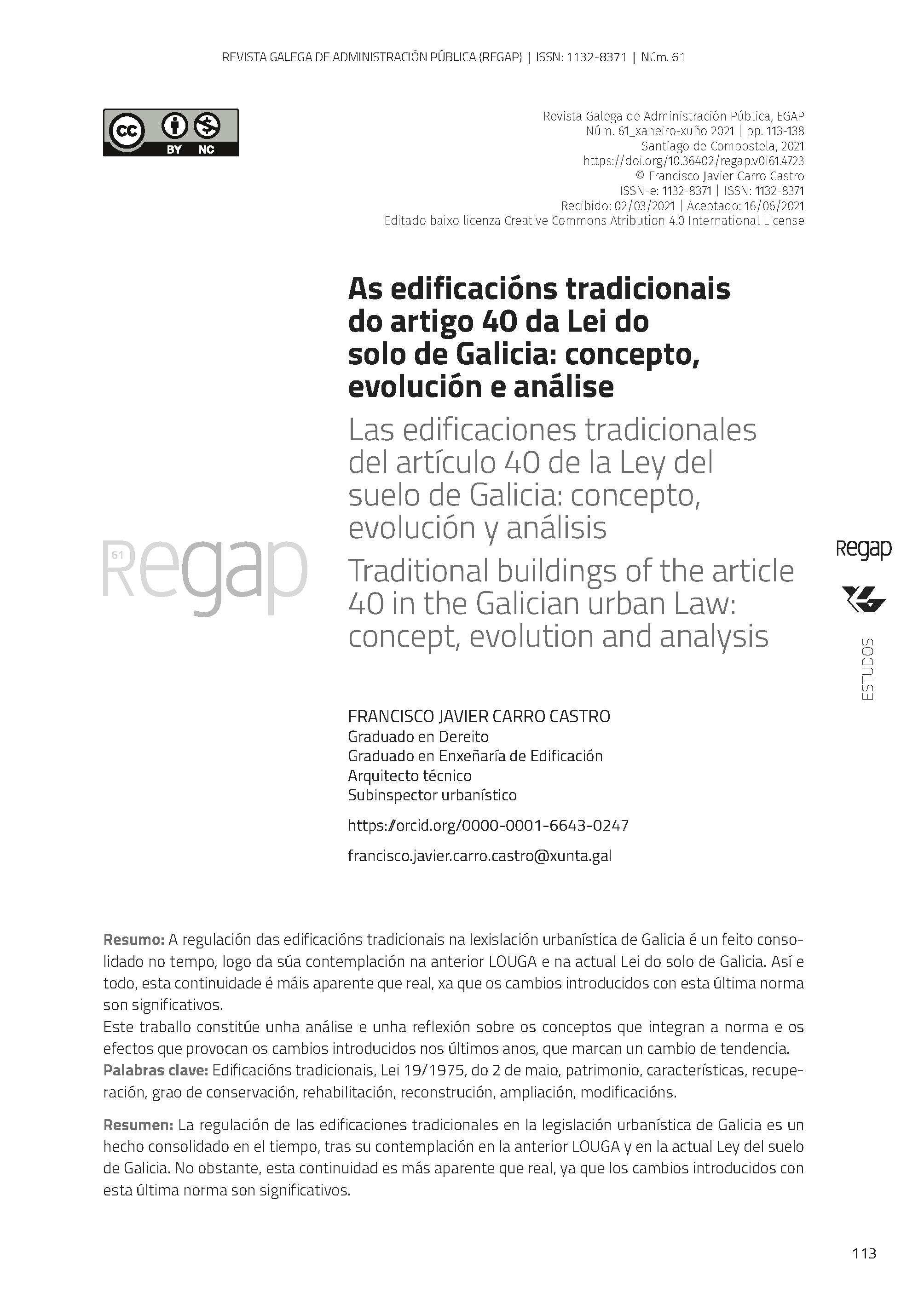 Traditional buildings of the article 40 in the Galician urban Law: concept, evolution and analysis