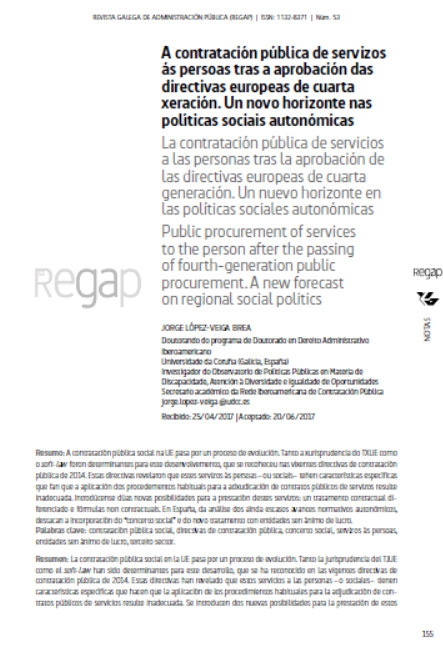 A contratación pública de servizos ás persoas tras a aprobación das directivas europeas de cuarta xeración. Un novo horizonte nas políticas sociais autonómicas