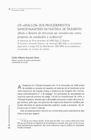 Os «atallos» dos procedementos sancionadores en materia de tránsito: ¿pode o boletín de denuncia ser considerado coma proposta de resolución e audiencia?