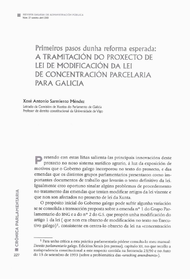 Primeiros pasos dunha reforma esperada: a tramitación do proxecto de lei de modificación da lei de concentración parcelaria para galicia
