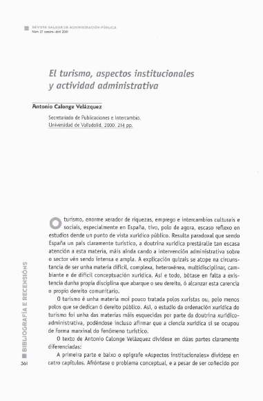 Turismo, actividad administrativa, dereito público, ordenación xurídica