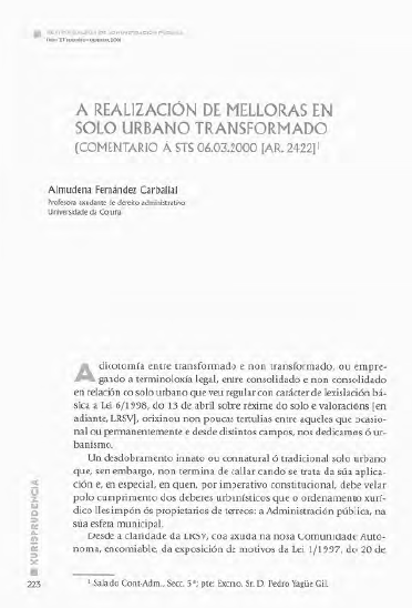 A realización de melloras en solo urbano transformado (comentario á sts 06.03.2000 [ar. 2422]