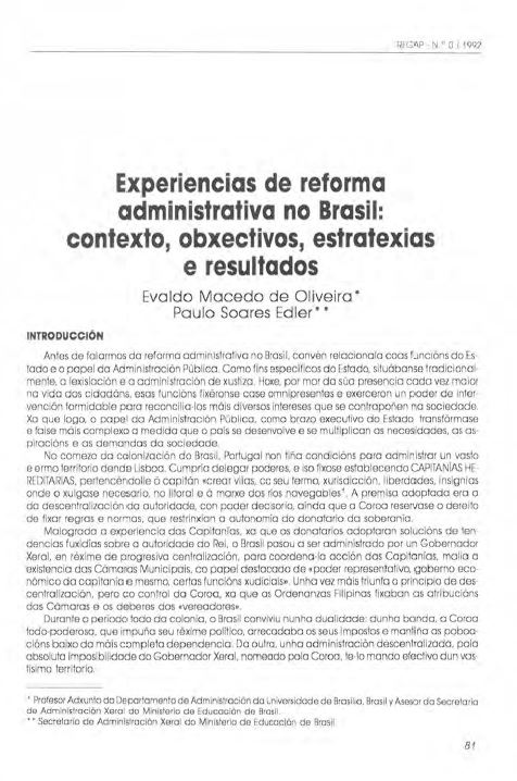 Experiencia da reforma administrativa no Brasil: contexto, obxectivos, estratexias e resultados