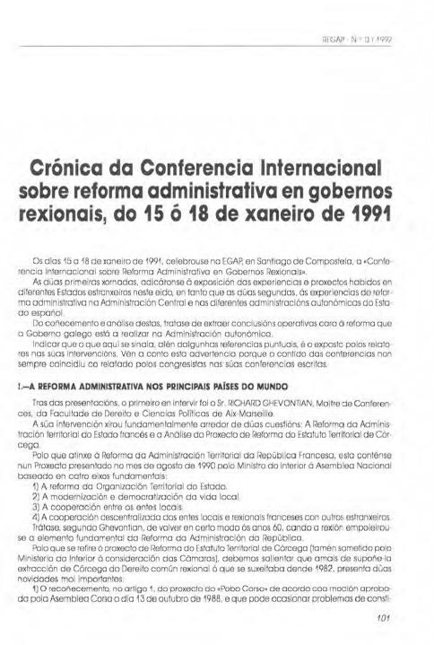 Crónica da Conferencia Internacional sobre a reforma administrativa en gobernos rexionais, do 15 ó 18 de Xaneiro de 1991