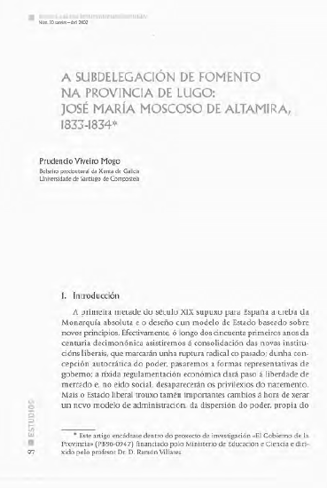 A subdelegación de fomento na provincia de Lugo: José María Moscoso de Altamira, 1833-1834