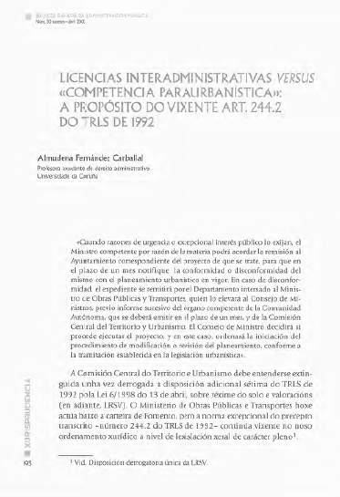 Licencias interadministrativas versus «competencia paraurbanística»: a propósito do vixente art. 244.2 do trls de 1992