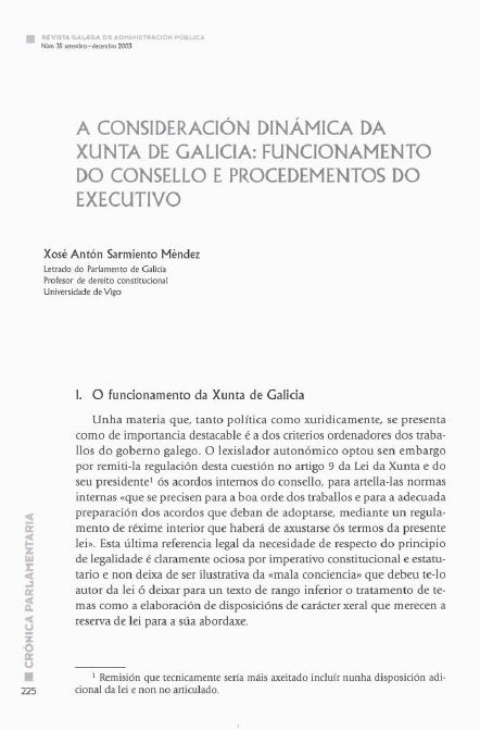 A consideración dinámica da Xunta de Galicia: Funcionamento do Consello e procedementos do executivo