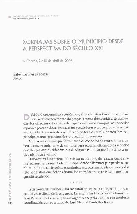 Xornadas sobre o municipio desde a perspectiva do século XXI