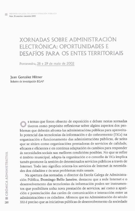 Xornadas sobre a administración electrónica: oportunidades e desafíos para os entes territoriais