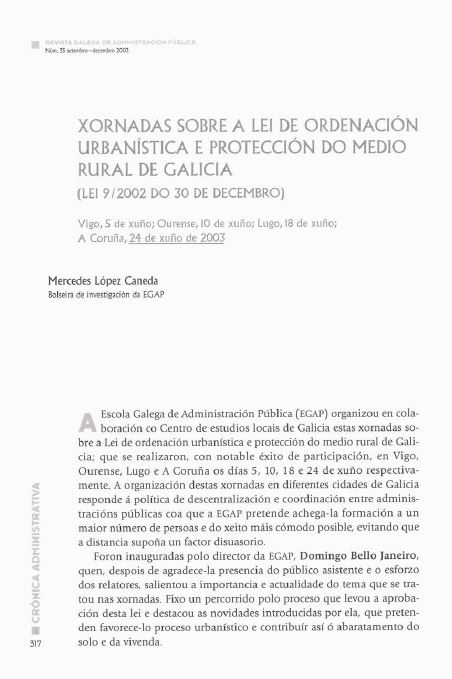 Xornadas sobre a Lei de ordenación urbanística e protección do medio rural de Galicia
