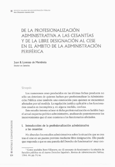 De la profesionalización administrativa a las cesantías de la libre designación al cese en el ámbito de la administración periférica