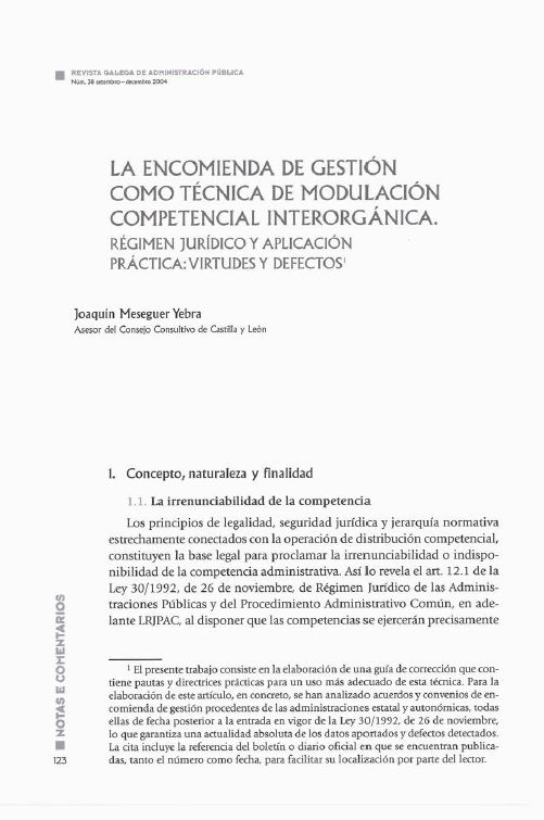La encomienda de gestión como técnica de modulación competencial interorgánica.