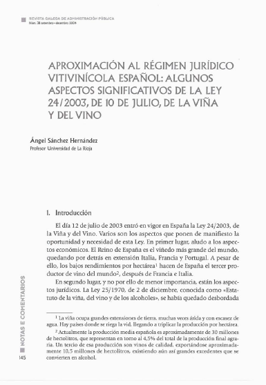 Aproximación ao réxime xurídico da viticultura española: algúns aspectos significativos da lei 24/2003, do 10 de xullo, sobre o viñedo e o viño