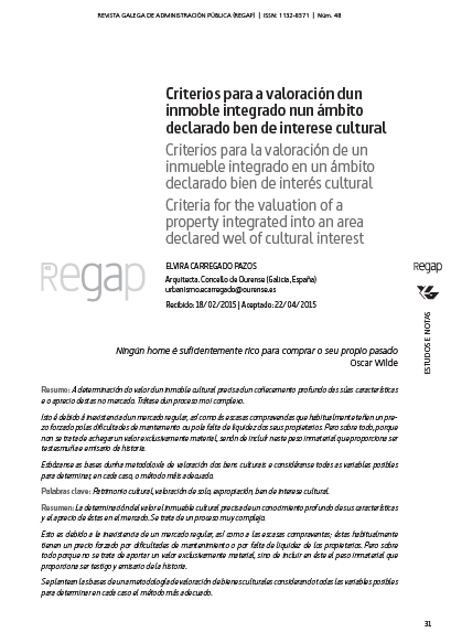Criterios para a valoración dun inmoble integrado nun ámbito declarado ben de interese cultural