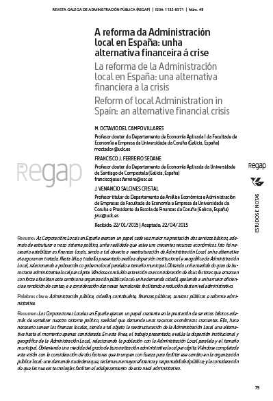 A reforma da Administración local en España: unha alternativa financeira á crise