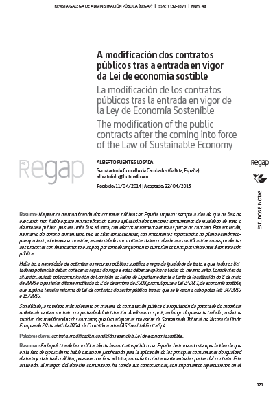 A modificación dos contratos públicos tras a entrada en vigor da Lei de economía sostible