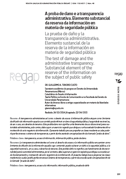 A proba de dano e a transparencia administrativa. Elemento substancial da reserva da información en materia de seguridade pública