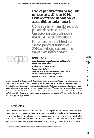 Crónica parlamentaria do segundo período de sesións de 2014. Unha aproximación pedagóxica á actualidade parlamentaria