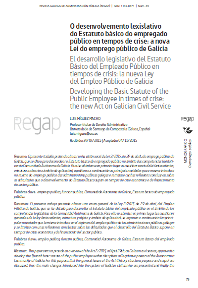 O desenvolvemento lexislativo do Estatuto básico do empregado público en tempos de crise: a nova Lei do emprego público de Galicia