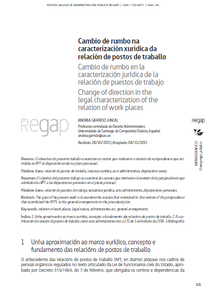 Cambio de rumbo na caracterización xurídica da relación de postos de traballo