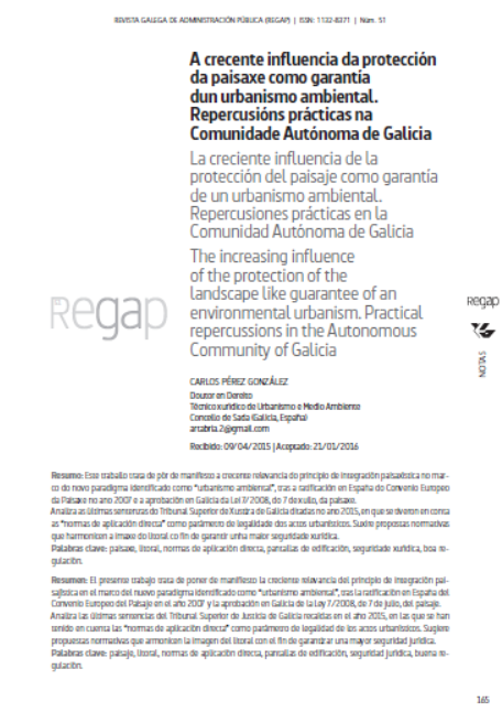 A crecente influencia da protección da paisaxe como garantía dun urbanismo ambiental. Repercusións prácticas na Comunidade Autónoma de Galicia