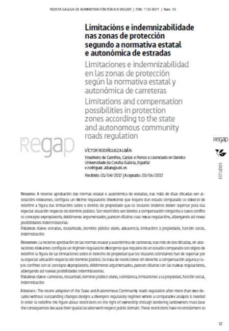 Limitacións e indemnizabilidade nas zonas de protección segundo a normativa estatal e autonómica de estradas