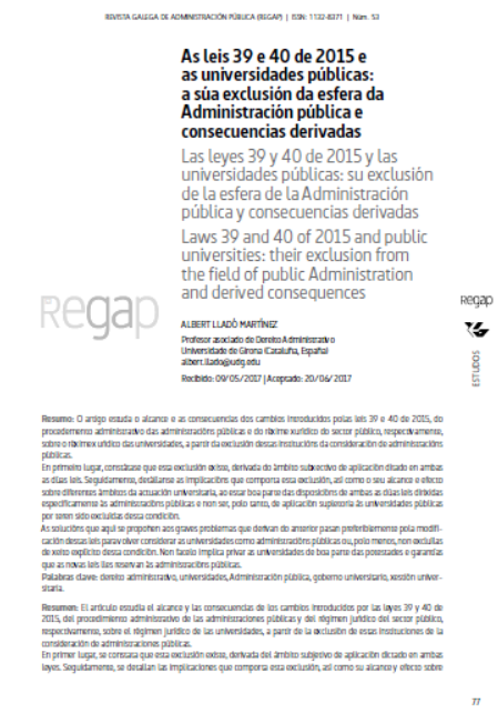 As leis 39 e 40 de 2015 e as universidades públicas: a súa exclusión da esfera da Administración pública e consecuencias derivadas