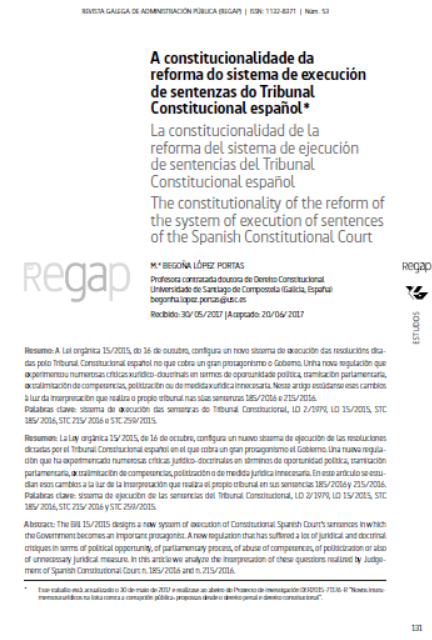 A constitucionalidade da reforma do sistema de execución de sentenzas do Tribunal Constitucional español*