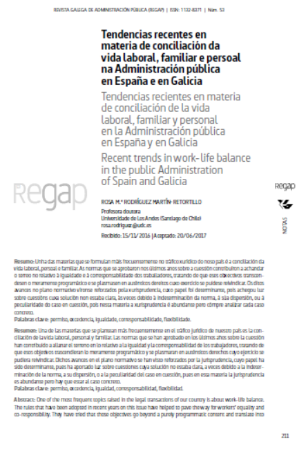 Tendencias recentes en materia de conciliación da vida laboral, familiar e persoal na Administración pública en España e en Galicia
