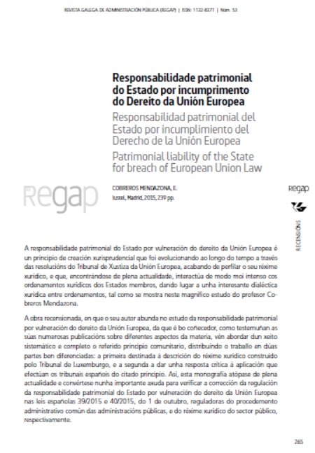 Responsabilidade patrimonial do Estado por incumprimento do Dereito da Unión Europea