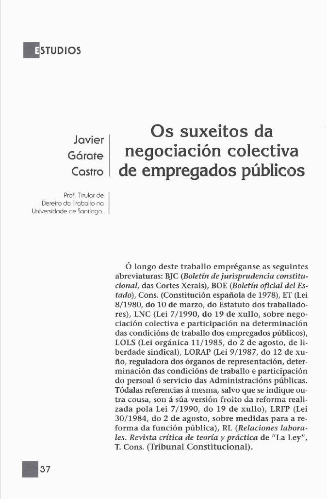 Os suxeitos da negociación colectiva de empregados públicos