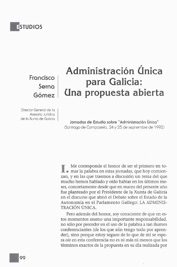 Administración Única para Galicia: Unha proposta aberta