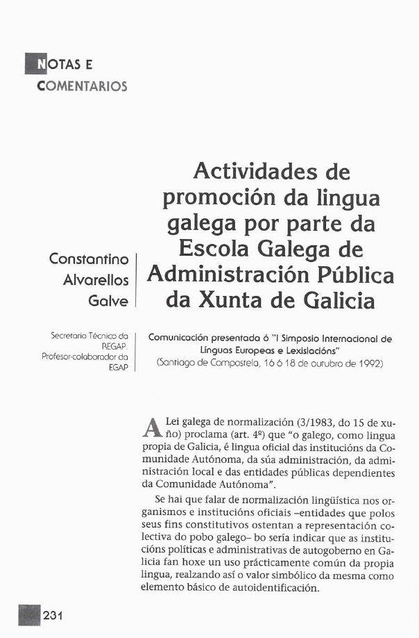 Actividades de promoción da lingua galega por parte da Escola Galega de Administración Pública da Xunta de Galicia