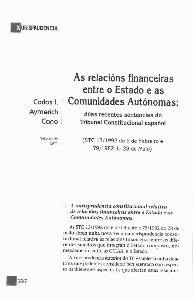 As relacións financeiras entre o Estado e as Comunidades Autónomas.