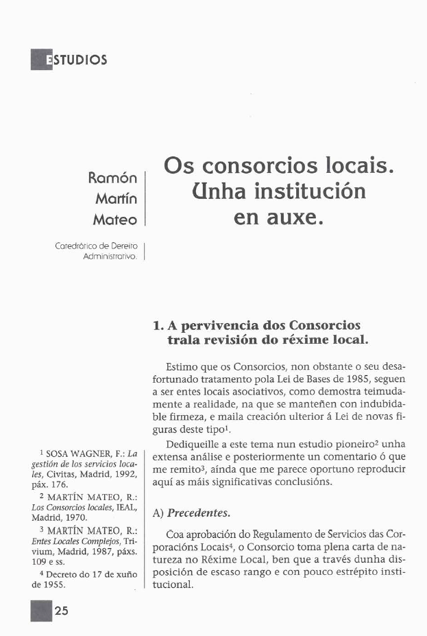 Os consorcios locais. Unha institución en auxe