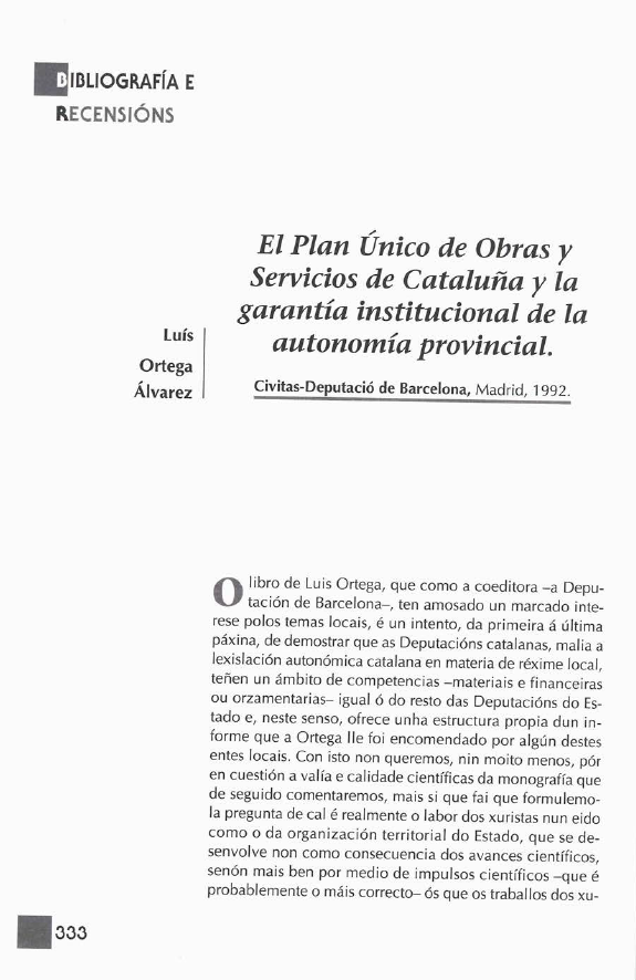 O plan Único de Obras e Servicios de Cataluña e a garantía institucional da autonomía provincial