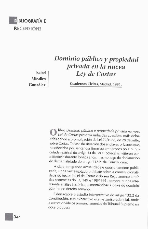 Dominio Público e propiedade privada na nova Lei de Costas